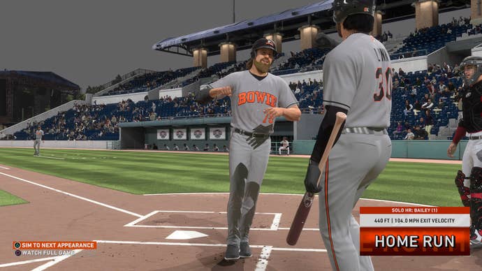 Road to the Show has "bros" now, which should launch a million "just bros being pals" jokes about Aaron Judge and Giancarlo Stanton. The concept is simple: completing plays with other members of your team will boost their friendship with you, culminating in the mythical "bro" status, which grants you certain stat boosts. If you get traded, it's meant to hurt more, as your boosts will be reset. I actually find Road to the Show kind of frustrating—consistently flying out as a 63 overall first baseman is infuriating—but I like the idea behind it all. It does a lot to create the fantasy of being on an actual baseball team, which is something Sony San Diego has been building up bit by bit over the past several entries.