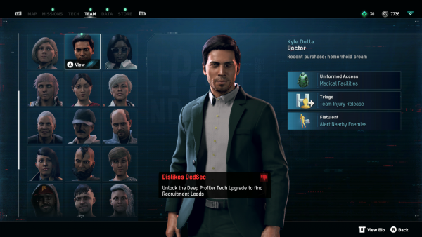 The same goes for recruiting folk - you can’t actually recruit everyone as there’s a limit on how many recruitment missions you can hold at a time and for the most part, the majority of people wandering about London are pretty boring. The best candidates are those with better hacking capabilities, as you’ll spend 90% of your time trying to figuring out how to open doors.