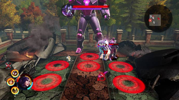 It's even worse when multiple attacks are happening at once. When all four heroes are using their Extreme attacks together and the camera's pulled out, you're mostly hoping that you're facing in the right direction—and that's on a television. Combined with a framerate that tries to stay at 30fps, but can dip hard during those aforementioned Extreme attacks, I'd say that playing Marvel Ultimate Alliance 3 in handheld is a struggle.
