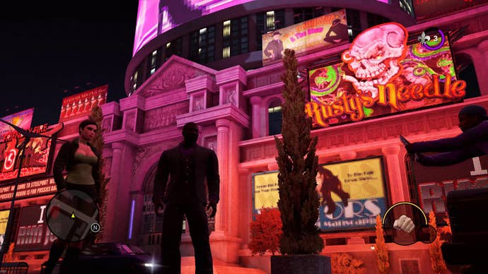 That last part is key because Grand Theft Auto also trends across this unreality with its version of satire. The difference is that Grand Theft Auto is sneering and disdainful, while Saints Row lives in embracing it all. Saints Row: The Third is generally on the side of, "We're all kind of fucked up, so it's probably best to embrace it. Live and let live!" It's not as wholesome as Sega's Yakuza series, but it's the only other series that lives in the same place. That's probably a pretty worthwhile message for 2020.